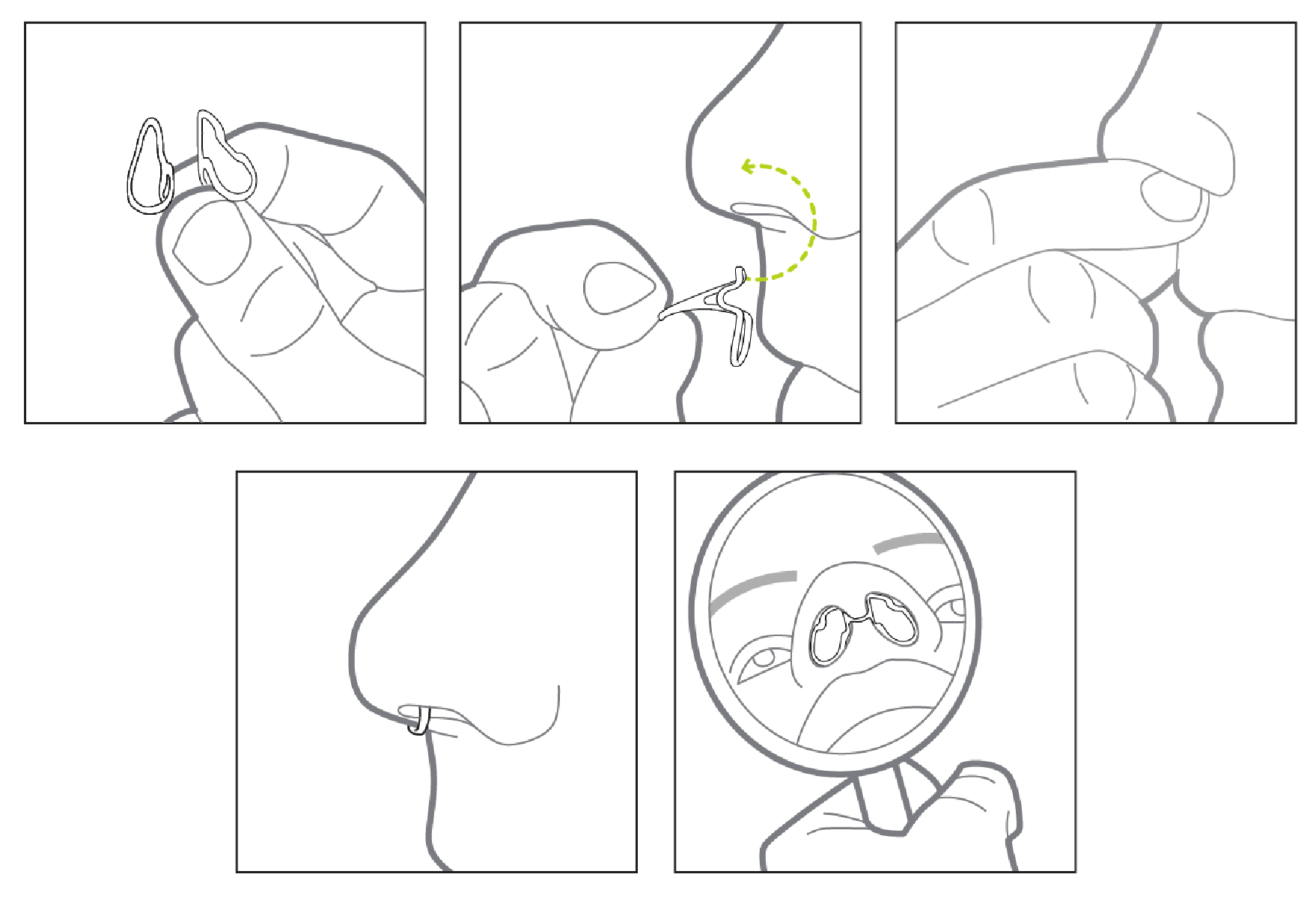 Die Nasenfilter werden dann einfach in die Nase eingesetzt.